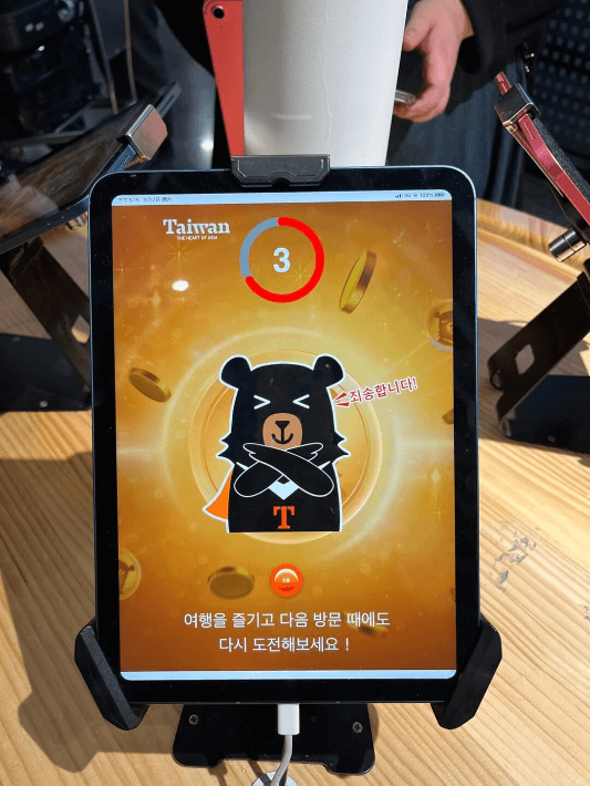바로 옆에 여행지원금 당첨을 확인할 수 있는 태블릿이 여러 대 준비되어 있습니다.