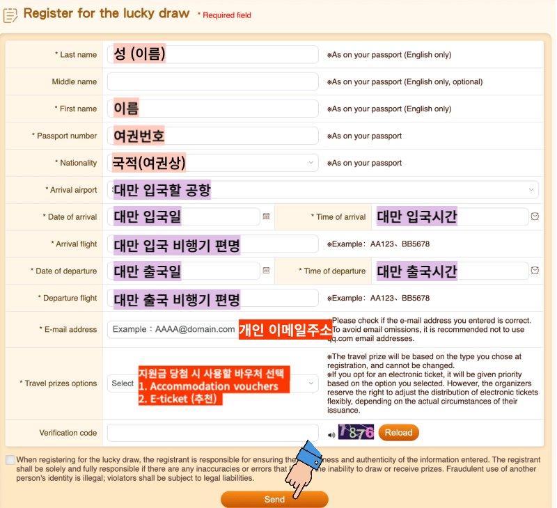 모두 작성하셨다면, 맨 아래 "Send" 버튼을 누르면 끝!!
