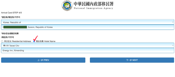 아래의 거주지는 대만에서 내가 머물 곳의 주소를 적어줍니다.