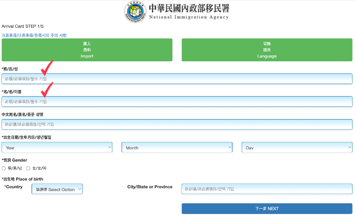 - 대만에 입국할 때마다 이민서 홈페이지에서 온라인 입국신고서를 미리 작성하고 가셔야 합니다. 위에서 설명드린 온라인 신고서 작성입니다. (등록센터에서 얼굴/지문 등록은 처음에 한 번만)
